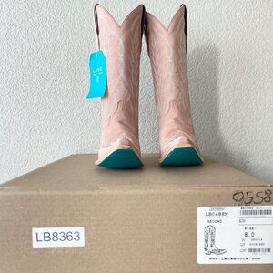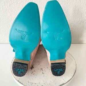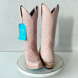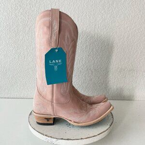 Reposhing because the calves are too tight. Never worn. Tags still attached. Lane women's heeled cowboy boots in soft pink. Smooth leather upper with decorative stitching for a classic western look. Stacked heel provides confident lift and all-day wear. Slip-on pull tabs for easy on and off. Versatile pink color pairs well with skirts or jeans.