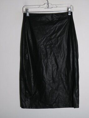 Popilush Shapewear Sculpting Faux Leather Front Slit Midi Skirt Womens Large
