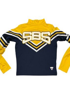 Vintage Varsity SBS Blue Yellow Cheerleader Uniform Top Shirt Size LARGE