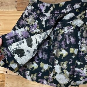 This Banana Republic mini skirt features a vibrant blend of black, purple, gold, and white hues in a pleated skater style, perfect for casual or cocktail occasions. Its flared silhouette offers a playful movement, while the pleated design adds a touch of elegance to your ensemble.