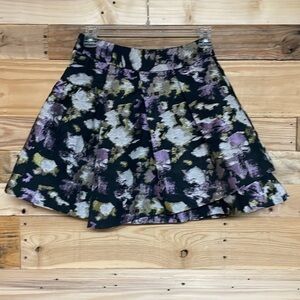 Banana Republic size 00 Petite Black with Multi-color Pattern Mini Skater Skirt