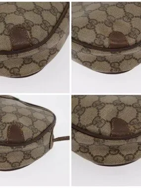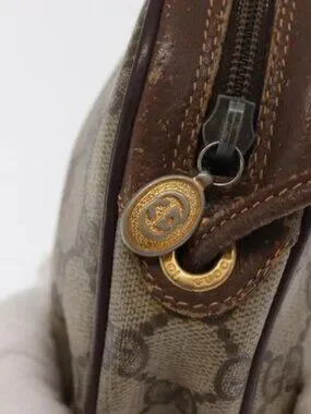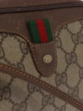 GUCCI GG Supreme Web Sherry Line Bag PVC Beige Gold 156 02 066 Auth BA10344