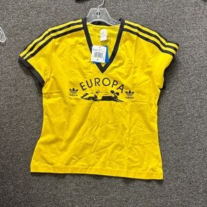 Adidas Red Europa Three-Stripe RingerTee 1989 OG Dead Stock