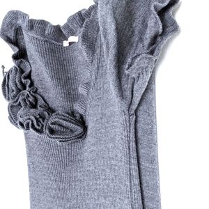 tags: knit, coquette, flirty, ruffle, romantic, datenight, made in Italy, XS, vintage, retro, Poie, wool, occasion, wedding guest, brunch, office, neutral