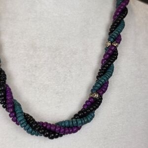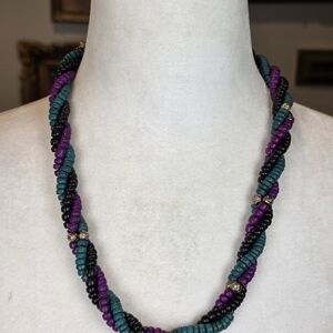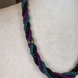 Vintage Chunky Twisted Beaded Necklace Teal Purple Black Multi-Strand Statement