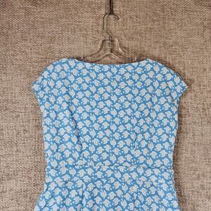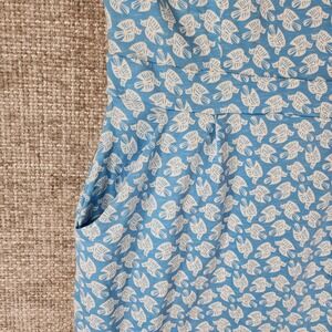 BODEN Blue White Florrie Dove Bird Print Dress Womens 10P Pockets Stretch Knit