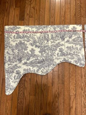 Elevate your windows with this blue and white toile scalloped valance. The elegant blue toile pattern adds a soft, classic touch to any room. Designed to coordinate with neutral decor and provide a refined, timeless look. Easy to style and care for.