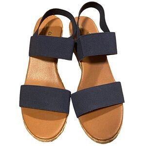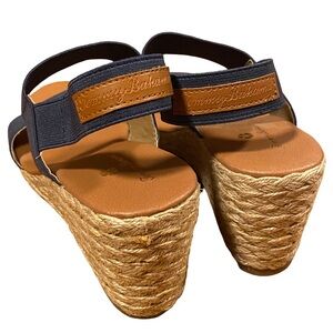 Tommy Bahama navy blue Sakura espadrille elastic wedge sandal heels size 10M