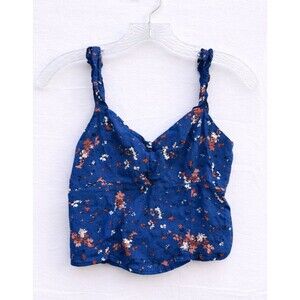 Abercrombie & Fitch Floral Smocked Crop Top Blue Tank Cami Women’s Size M Boho