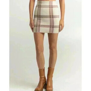 Tillys Full Tilt Plaid Sweater Skirt Cream Combo Medium Mini Skirt