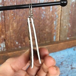 Earring measurements are approximately 2.25 inch length and 1.5 inch width at the widest measurement.