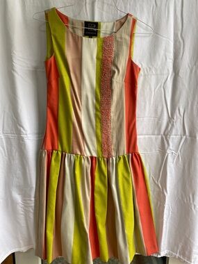 From designer Cadieux, size European 34, low waist color block dress.
