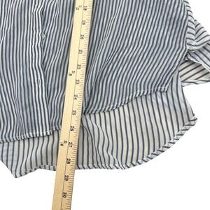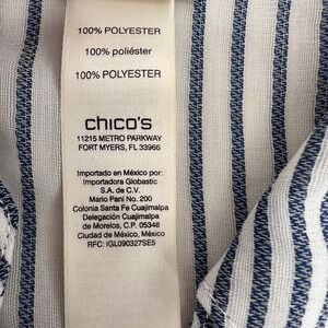 Chicos Striped Button Down Shirt Womens Size 1 Med Blue White Lightweight Sheer
