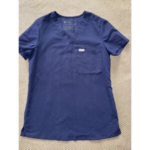 FIGS Women's Technical Collection Scrub Top Blue Short Sleeve Button Up Sz 2XS