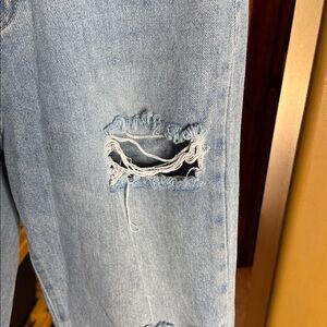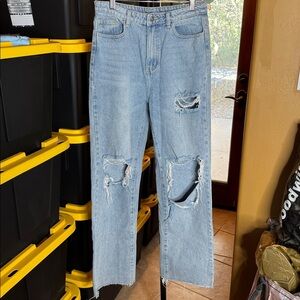 SHEIN EZwear Ripped Cutout Wide Leg Jeans Size 6 Light Wash Y2K Streetwear Denim