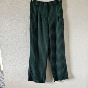Women’s Green Pin Striped Trousers Fits Medium Shein Casual Dressy in great condition/ Not stretchy / pleased front/ has pockets/ raw cut hem - good for short girls/ cause dress up or down/