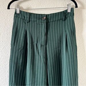 Women’s Green Pin Striped Trousers Fits Medium Shein Casual Dressy preppy