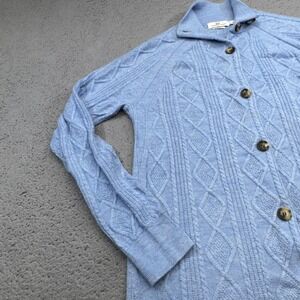 Vineyard Vines Sweater Coat Womens Small Blue Cashmere Cable Knit Long Cardigan