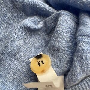 Pre-owned Vineyard Vines Womens Small blue cashmere cardigan with interior brand and size labels intact. Fabric shows light overall wear with surface pilling and slight fuzzing on body and sleeves; minor fraying at collar buttonholes. Spare replacement button attached.
