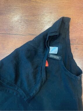 Black sleeveless crop tank from Divided. Small rainbow chest graphic adds vibrant color. Simple crew neckline and casual fit. Great for layering or warm days. Rainbow