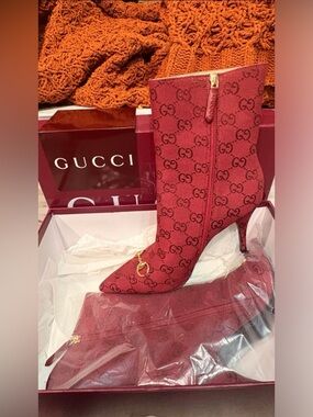 Brand new **Gucci GG monogram ankle boots in red.