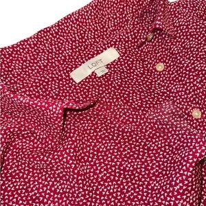 Chic LOFT shirt with a crimson and white geometric design. Features button-up closure. Ideal for versatile styling.