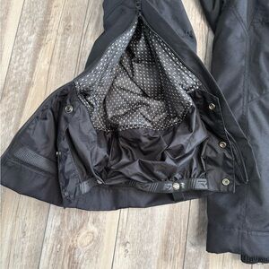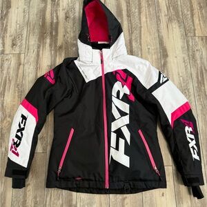 Women’s snowmobile set in black with pink and white accents. Water-resistant jacket with zip pockets. Insulated pants designed for warmth and movement. Stylish, durable outerwear perfect for winter activities. A small stain and letter fading on jacket (see pics) and the bobs are like new only used twice. I had a baby and outgrew this set and unfortunately have to let it go. Both in size 8