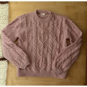 Demylee Cable Sweater Chunky Cable knit Fisherman Crew Neck Wool Mohair Pink S