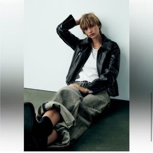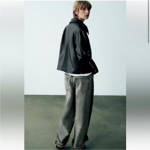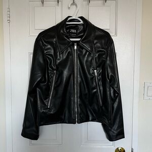 Zara Black Faux Leather Zip-Up Jacket