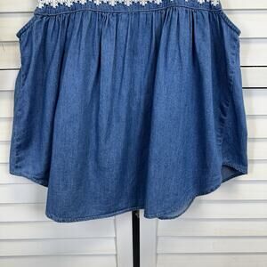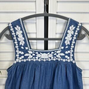 Lovers + Friends Dream Catcher Tank Top Blue Chambray Embroidered Boho Size XS
