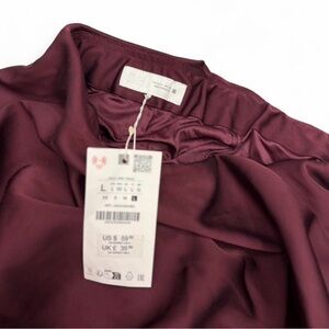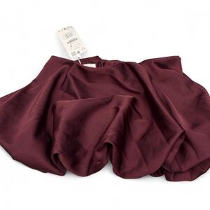 Zara Burgundy satin mini skirt with built in shorts and ruched detailing