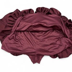 Luxurious satin skirt in deep burgundy. Smooth finish with elegant drape. Versatile piece for dressy looks.