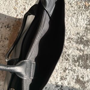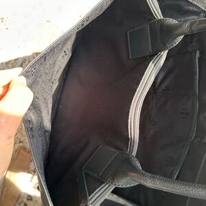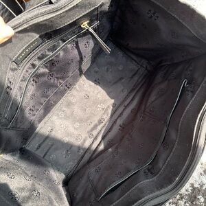 Tory Burch Black Leather & Canvas Double-Compartment Tote