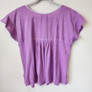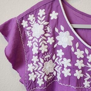 Lucky Brand Purple Embroidered Boho Peasant 100% Cotton Floral Ethereal, Large