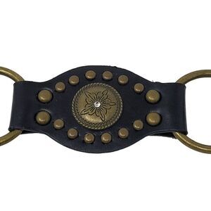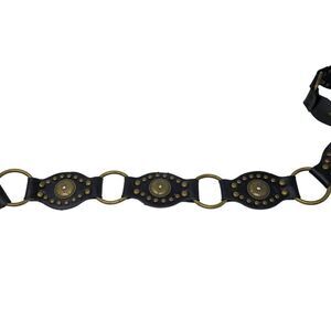 Unisex Vintage-Inspired Black Vegan Leather Belt Brass Concho Studs Chain Hip XL