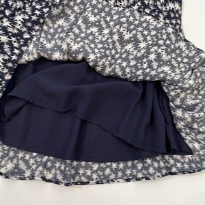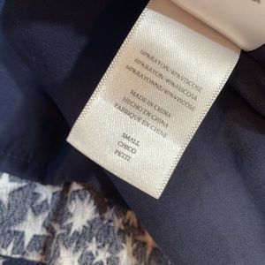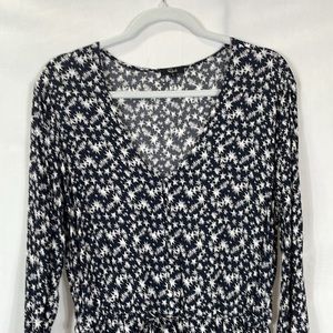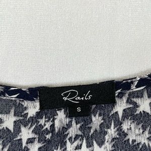 Rails long sleeve dress with allover star print. V-neckline and defined waist. Lightweight, flowy skirt. Classic black and white colorway. Easy, stylish piece for everyday wear.