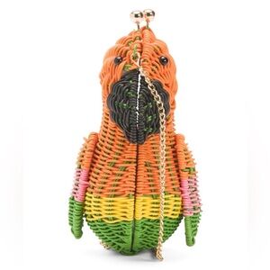 TROPICAL PARROT WICKER BAG WITH CHAIN CROSSBODY STRAP! New