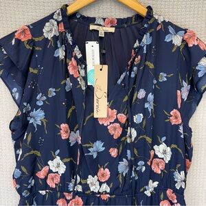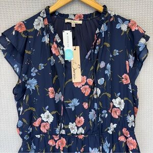 NWT Les Serein Women’s Clio Flutter Sleeve Floral Print A-Line Dress Blue XL