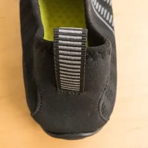 Breathable mesh black upper with gray striped accents for a comfortable fit and quick drying performance