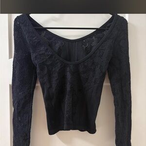 Urban Outfitters Black Lace Long-Sleeve Scoop Neck Top