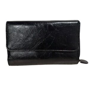 Faux Leather Black Wallet Organizer Built-In Calculator & Multiple Compartments