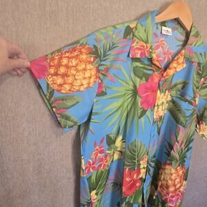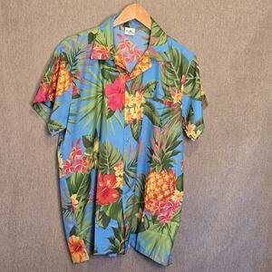 King Kameha Hawaiian Shirt Large Men's Tropical Floral Pineapple Short Sleeve