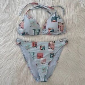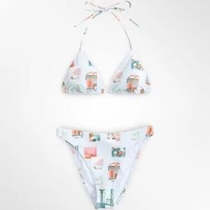 Abercrombie & Fitch Light Blue Photo-Print Triangle Bikini XS top S bottom