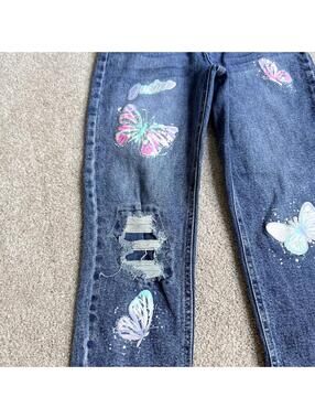 Justice Girls Butterfly Jeans Size 12 Distressed Denim