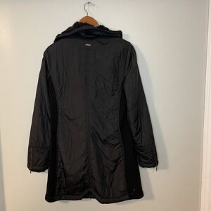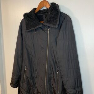 PrAna Diva Quilted Sherpa Lined Long Jacket Size S Black Asymmetrical Zip