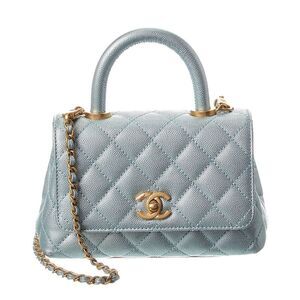 About the brand: Founded by Coco Chanel in 1910, this French luxury fashion house revolutionized haute couture. Chanel offers exceptional and uncomplicated fashion, accessories, beauty, and luxury goods. This is an authentic, pre-loved piece. This item is in very good condition and shows light signs of wear. This item shows some wear to hardware For more information on condition, please see our condition guide at the bottom Extra Mini Coco Handle Flap in Blue Quilted Caviar Leather with Leather lining and gold-tone hardware Pockets: 2 interior pocket Measurements: 7.5in long x 3in wide x 4.9in high; 2.5in handle; 22in strap Please note: All measurements were taken by hand and are approximate; slight variations may occur. Accompanied by branded dust bag Turnlock closure Our products are 100% genuine. In some cases we purchase merchandise from trusted independent suppliers and not directly from the brand owner. In all cases we stand by the authenticity of every product sold on our site.