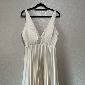 Abercrombie & Fitch Plunge V-Neck Pleated Satin Mini Dress NWT Size Large Ivory Cream