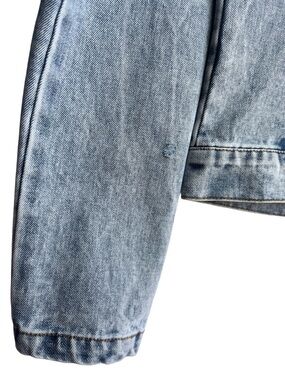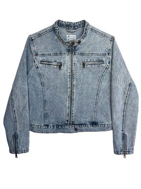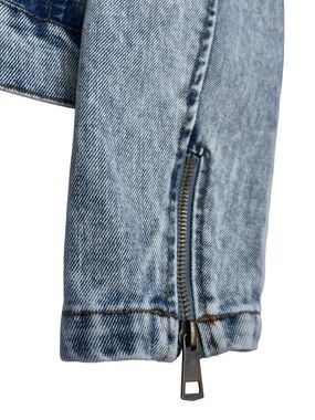 Cropped Acid Wash Denim Moto Jacket Blue L 100% Cotton