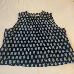 J. Crew Navy Linen/Cotton Blue Sleeveless Patterned Top, Keyhole Back, Size 3X