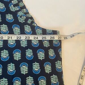 J. Crew sleeveless linen/cotton top in navy blue with a repeating light blue and green leaf motif. Rounded neckline with a small keyhole and button at back. Lightweight. See all pictures for measurements, etc. Excellent, like new, condition! Size 3X.